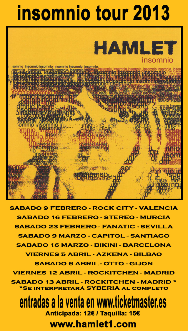 Concierto de Hamlet en Madrid abr 13, 2013 by admin in Concierto Este fin de semana Hamlet regresan a la capital de España haciendo dos fechas, viernes y sábado, en la Sala Rockitchen. Una buena forma de ver el estado de forma de la banda, que presentarán al completo su disco “Syberia” en el concierto del sábado