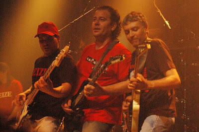 Volviendo a los protagonistas de la noche, me atrevo a adivinar que mucha de la gente que abarrotaba la sala Heineken sentía algo por el estilo….tanto fans que los pudo ver en su época y que volvía con gusto a una sala a presenciar su actuación, y mucha gente como nosotros, que nunca tuvimos la oportunidad de verlos entonces y que alucinábamos con la posibilidad de verlos allí, a escasísimos metros, puesto que la distancia del escenario con el público era mínima…Y creo que las dos actitudes explican el inmenso cariño que desde el primer momento se mostró a la banda. Gritos constantes de “¡Leize, Leize!”, silbidos, aplausos… un público entregado como pocas veces he visto y una banda feliz, muy feliz, porque no había más que ver cómo lo estaban pasando allá arriba para constatar esto, sonriendo constantemente, rebosando alegría por los poros… y es que con un público así de entregado era fácil sentirse en la gloria….y además Leize es una banda que transmite buen rollo a raudales con lo que el cariño y la interacción entre público y banda fue realmente especial desde el primer momento.