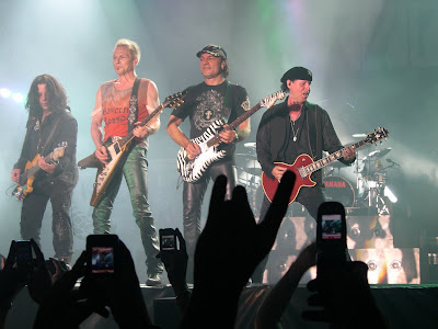 Un Rudolf Schenker pletórico a lo largo de toda la actuación (aunque algo más apático que de costumbre) se supera en lo que es la parte final del show (también muy similar a la referida última visita), “Blackout”, “Another Piece Of Meat”, “Big City Nights” y la ya repescada en la pasada gira y tanto tiempo añorada “Dynamite” (tremendo cañonazo) que, aunque algo más pausadas que en su momento, hacen que Klaus fuerce aún más sus cuerdas vocales y que el respetable canta y baila siguiendo ya incondicionalmente a la banda.