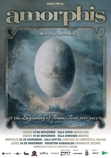 Según reza la nota promocional que nos envían los promotores de la gira: “Como sus fans bien saben, Amorphis no es una formación fácil de ver en España de modo que éste tour se convierte sin duda en una oportunidad única de verles realizando un extenso repaso a su carrera discográfica sin dejar ningún clásico y por supuesto centrados en temas de su flamante nuevo album “The Beginning Of Times”. Como invitados de lujo tendremos a los Noruegos LEPROUS (músicos de directo para Ihsahn) sin duda una gran noticia para los amantes del progresivo contemporáneo, fresco y con una clase que podría hacer palidecer a los más grandes del género. Abriendo la noche estarán los que son sin duda una de las bandas Españolas con más proyección internacional y que ya lo han demostrado en sus numerosos conciertos fuera de nuestras fronteras. Los Alicantinos NAHEMAH cierran el cartel de una gira sin precedentes y que promete ser de las mejores durante éste 2011.”