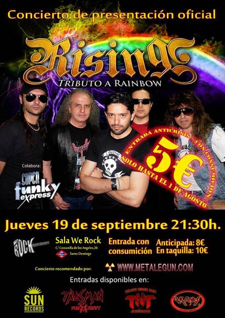 Vamos retomando la agenda de conciertos y nos apetece reseñar un show muy interesante que tendrá lugar el próximo jueves en Madrid, concretamente en la sala We Rock. Y aunque en Corsarios no somos fanáticos de los tributos, de vez en cuando aparece alguna banda realmente interesante como en el caso que nos ocupa. De hecho, nombres como Armando de Castro (BARÓN ROJO), Ronnie Romero (NOVA ERA), Andy C (SARATOGA) y Gorka Alegre (BARÓN ROJO), aseguran la calidad de RISING, banda tributo nada más y nada menos que a los dioses RAINBOW.
