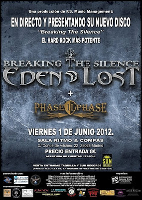 Nuestros amigos de EDEN LOST presentan su excelente “Breaking the silence” este viernes en Madrid. Con un inesperado cambio en la formación de última hora (el guitarrista original Javi Nieto ha tenido que dejar la banda por motivos personales, y será el propio cantante Ignacio Prieto el que se haga cargo de la segunda guitarra), la banda demostrará porqué son una de las mejores bandas de hard rock que tenemos en nuestro país en la actualidad.