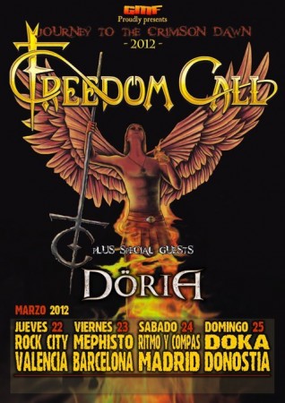 Llega también esta semana la gira de FREEDOM CALL a España, y es que los seguidores del heavy/power centroeuropeo estáis de enhorabuena con la nueva visita de los “happies” germanos. Además, vienen acompañados de los catalanes DORÏA, una banda muy interesante que no os debéis perder, y en Madrid en concreto de BLOODY GRASS, una formación con chica al frente que darán que hablar, y que además ya tienen lista su primera maqueta.