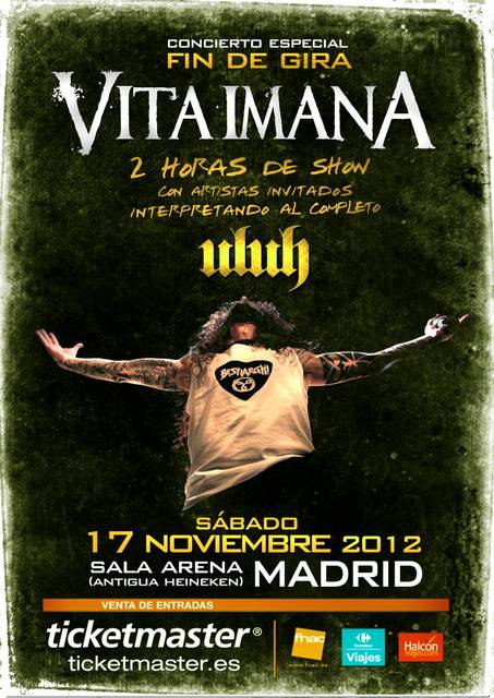 Hoy sábado 17 Noviembre 2012 en la Sala Cats, Madrid, llega por fin el esperado concierto Fin de Gira de VITA IMANA con grabación en DVD, artistas invitados e interpretación del nuevo disco, “Uluh” al completo por primera vez. Promete ser una noche única, como ya nos contaron Puppy y Javi la semana pasada en el estudio corsario en directo.