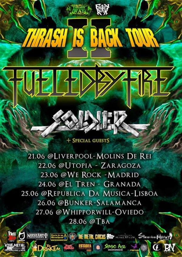 El Thrash metal está pegando fuerte en los últimos tiempos y es que, hasta el nombre de esta gira lo anuncia orgulloso: “Thrash is back”, y bajo este lema que podríamos traducir como “El Thrash está de vuelta” están girando FUELED BY FIRE  y SOLDIER por toda la península. Si en la primera edición fueron HAVOK y CLOCKWORK los protagonistas, estos ceden ahora el testigo thrasher a FUELED BY FIRE, la ya consagrada banda californiana, y  a SOLDIER, desde Oviedo y con mucho qué decir en la escena.