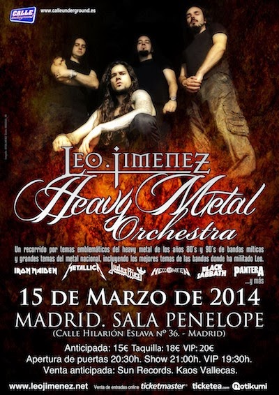 De la mano de LEO JIMÉNEZ se presenta en Madrid HEAVY METAL ORCHESTRA, su nuevo proyecto, que ofrece un repertorio conformado por versiones de clásicos del heavy metal de los 80 y 90 tanto nacionales como internacionales. Además el concierto se completa con un repaso a los mayores éxitos tanto de la carrera en solitario de LEO como de las bandas a las que ha pertenecido.